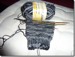 Ich war schon sehr fleißig ich habe es getan den 2 Socken meiner Kollegin angestrickt . Das ist noch ein ausstehendes Geschenk von weihnachten ich tue mich damit soooooo schwer weil mir diese dunkle Farben nicht liegen . Aber Versprochen ist Versprochen und jetzt muss ich durch .